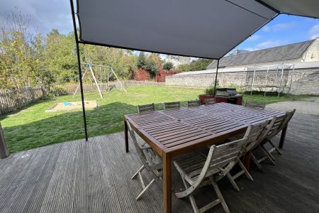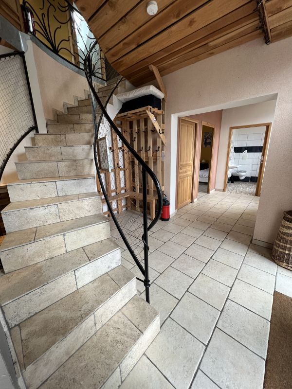 R.d.c. : hall d'entrée, cuisine équipée ouverte sur séjour-salon (canapés, fauteuil, etc.), 1e ch (3 lits de 90), wc, salle d'eau/wc. Etage : 4 chambres (2 lits 90 chacune), 2 salles d'eau, 2 wc, 6e ch et 7e ch (ce sont 2 petites chambres en mezzanine, avec deux lits de 90) + une annexe avec 2 chambres ( 1 lit 140 et 1 lit 90) salle de bain avec douche à l'italienne et WC. Connexion internet (WIFI et prise RJ45). Chauffage central au bois par chaudière à pellet (inclus). Jardin privatif clos de 550 m², plancha, terrain de pétanque, carré potager, ping-pong, portique d'enfants, bac à sable. Parking privé.
